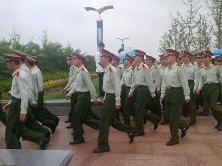 200多名09级新生精神饱满地列队集中在镜湖湖畔的升旗台前。6:55分雨驻,国防生身着军装,个个身姿挺拔,迈着整齐的步伐走向升旗台护卫五星红旗。7点整,在雄壮的国歌声中,五星红旗迎风徐徐升起,全体新生行注目礼。之后,亚洲色情