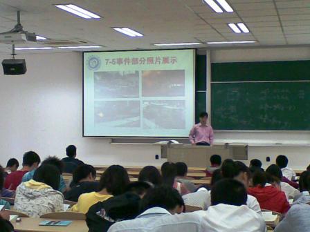 08级学生在A203进行了主题为“乌鲁木齐7.5暴力事件解析”的讲座。讲座中,杨艳生老师为大家讲解了“7.5”暴力事件的背景、起因和影响,使我们对整个事件有了一个清晰、正确的认识。通过学习同学们了解到,乌鲁木齐“7.5”暴力犯罪事件是一起由境内外“三股势力”相互勾结,精心策划组织的打砸抢烧严重暴力犯罪事件,也是一起残无人道地滥杀无辜群众的暴力恐怖事件。其险恶用心是妄图破坏民族团结,危害社会稳定,达到其分裂国家的目的。讲座后同学们纷纷表示7.5暴力犯罪事件中的犯罪分子都应当受到法律的严厉惩处,同时我们也应该努力去争取民族的团结,谋求国家的和谐、稳定。