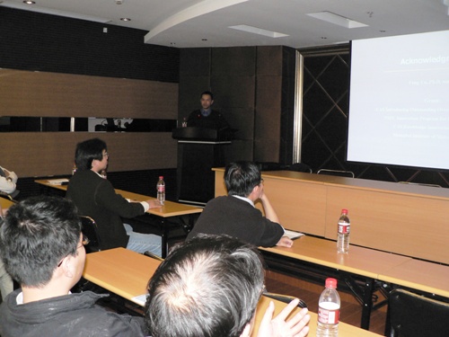 授聘仪式之后,刘东祥教授作了题为“structure Assembly of Bcl-xL in Solution and in Lipid Membranes”的学术报告,报告会受到与会师生的欢迎。刘东祥研究员到我院任兼职教授,将有利于我院正在实施的教育部学科创新引智计划“神经退行性疾病相关蛋白与药物发现”研究和药学学科的进一步发展。