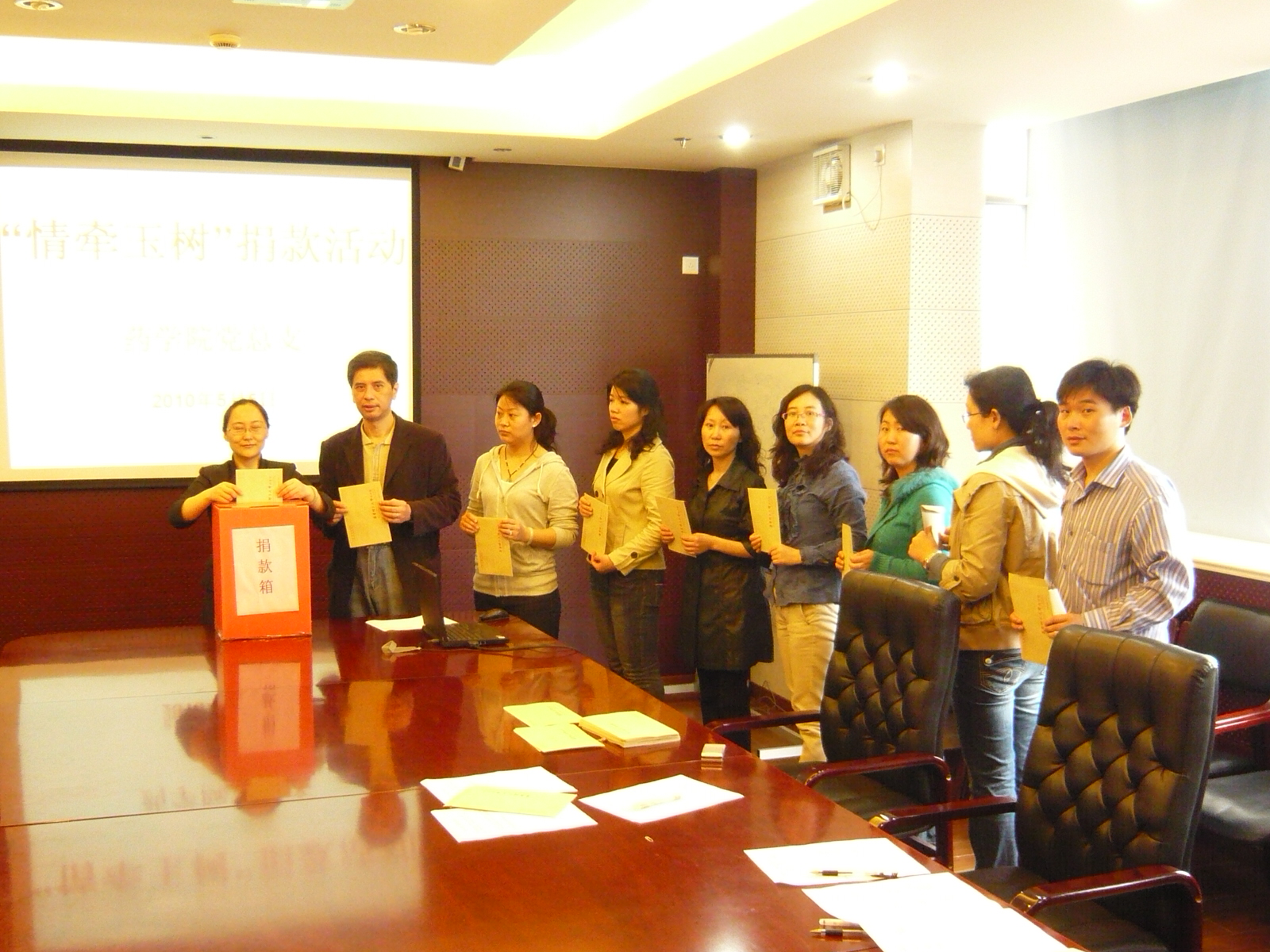 党总支发起了“情牵玉树”捐款活动倡议书,5月5上午,“五一”长假结束后第一个工作日,广大师生齐聚在亚洲色情