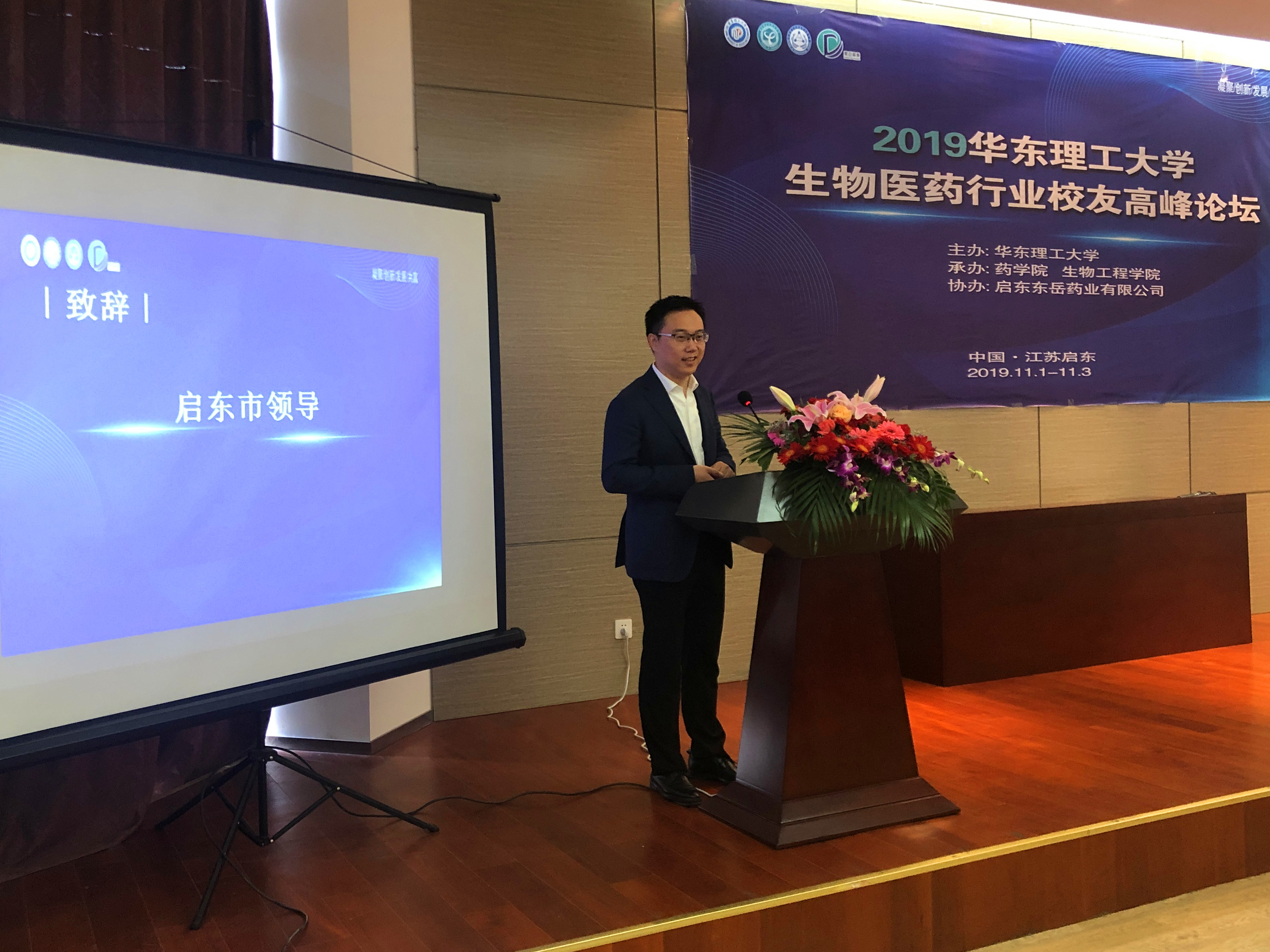 校友工作情况,并结合生物医药行业目前所面临的挑战与机遇,阐述了此次校友行业论坛开展的重要意义,希望以此次论坛为源头,以学校为中心,凝聚行业校友力量,共同推进我国生物医药行业及学校的长足发展,为政产学研用的合作搭建桥梁与纽带,也希望广大校友对学校发展多提宝贵意见,为学校“双一流”建设积极献计献策。