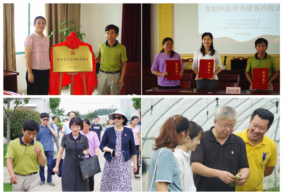 党委副书记王越,药物化工研究所所长李忠,青浦区蔬菜技术推广站站长王桂英,上海世鑫蔬菜种植专业合作社法人田金弟及药物化工所教师及学生党员代表等出席了本次党组织合作共建签约仪式。