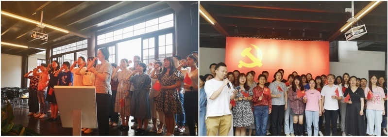 最后,大家来到中共二大会址。在党委书记张青带领下,全体党员面向党旗,举起右手,庄严宣誓,坚定入党初心;随后大家情不自禁唱起《没有共产党就没有新中国》,共谱新时代继续推进中华民族伟大复兴的激昂旋律。