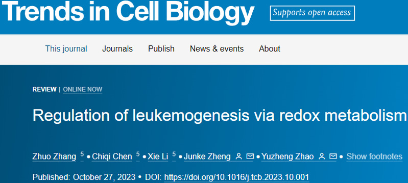 【创新前沿】Trends in Cell Biology报道我院氧化还原代谢调控白血病发生的研究综述