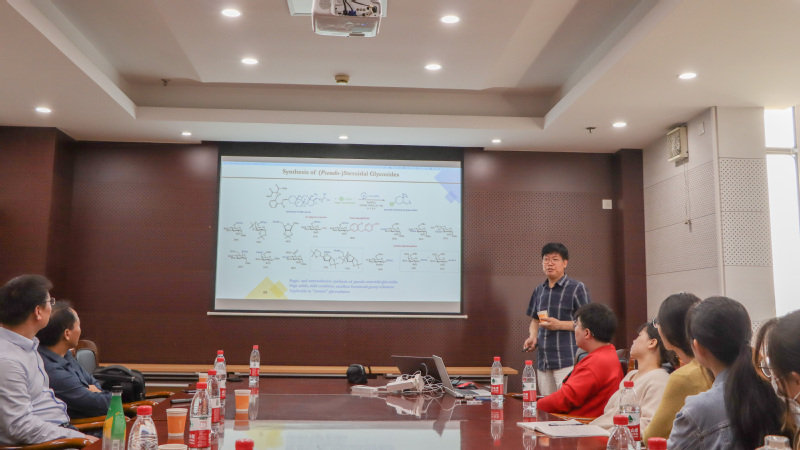 刘学伟围绕糖苷化策略和细菌表面糖缀合物的合成展开介绍了碳水化合物结构的复杂性、活性的多样性以及应用的广泛性。其课题组近年来在糖苷化反应以及寡糖生物学研究方面的进展,并对其参与细菌表面肽聚糖生物合成途径和抗菌活性进行了评价。