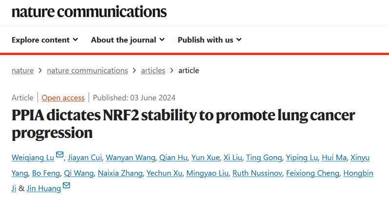 近日,亚洲色情 亚洲色情 黄瑾课题组在国际权威学术期刊Nature Communications发表题为“PPIA dictates NRF2 stability to promote lung cancer progression”的研究论文,报道了PPIA是维持NRF2蛋白稳定性的关键伴侣蛋白,破坏PPIA/NRF2互作可导致NRF2蛋白水平下调,证明了PPIA/NRF2互作具有明确的可靶向性,是潜在的抗肺癌药物新靶标。