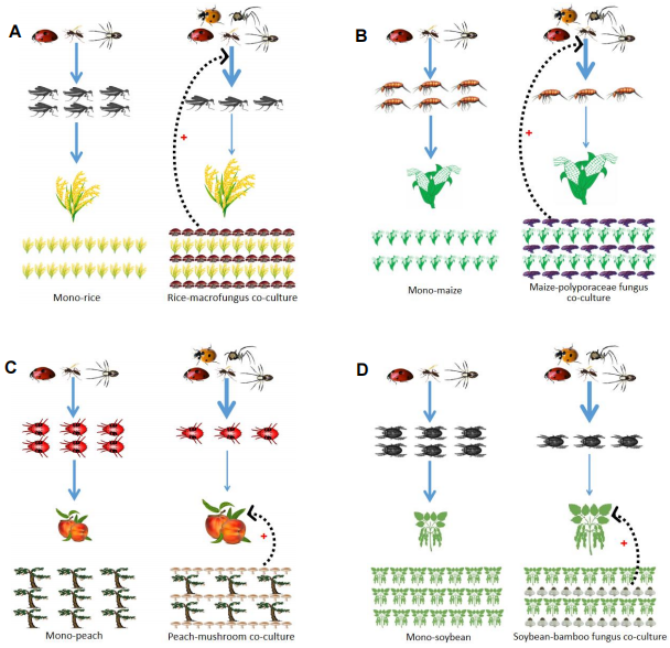 图5:作物与食用菌共存的物种多样性控害假说