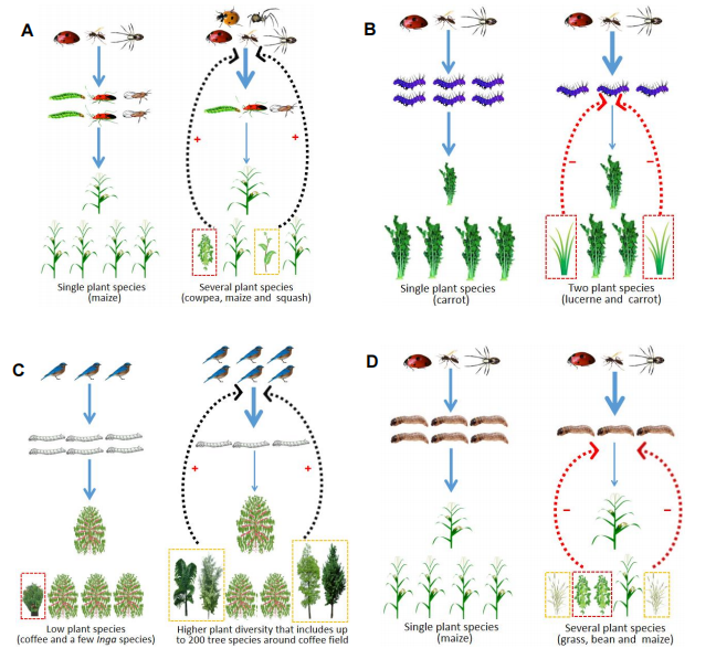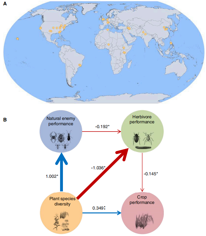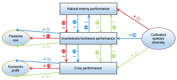 图1:全球作物多样性种植促发天敌、害虫、作物的营养级联动