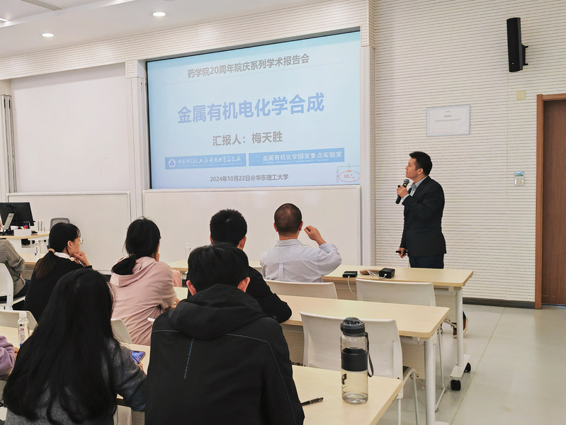 梅天胜是国内有机化学领域的知名专家,长期致力于金属有机电化学合成方法的研究与应用。在本次报告中,他首先回顾了电化学合成的发展历程,强调了电化学作为一种绿色、高效的合成手段,在现代有机合成中的重要地位。随后,他详细介绍了其团队在金属有机电化学合成领域的最新研究成果,包括新型反应体系开发、合成策略创新以及新反应和新策略在药物合成中的应用。最后,他分享了其研究思路的形成过程,强调了基础研究与应用研究相结合的重要性。他鼓励在场的师生要敢于创新,勇于探索,以解决实际问题为导向,推动科学研究的深入发展。