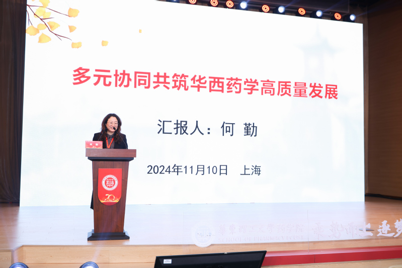 副院长何勤教授以“多元协同共筑华西药学高质量发展”为题,强调药学学科是一个多学科多领域交叉融合的学科,需要产学研医等多方协同,才能在人才培养和科学研究上实现高质量发展。