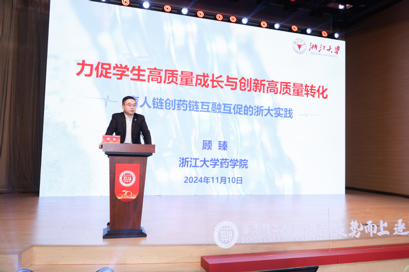 院长顾臻教授以“力促学生高质量成长与创新高质量转化-育人链与创药链互融共促的浙大实践”为题,介绍了浙江大学在人才培养和新药创制等方面的实践经验,以及浙江大学在药学学科建设上的关键对策与模式探索。