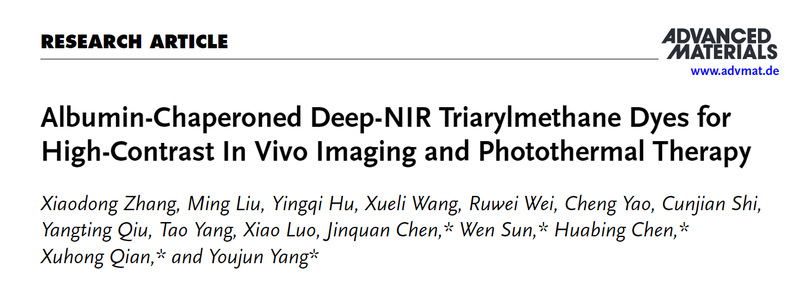 近日,亚洲色情 亚洲色情 钱旭红院士、杨有军教授团队设计并两步合成具有“螺旋桨构型”的深近红外三芳基甲烷衍生物(EA5系列染料)。利用生物内源性白蛋白对EA5染料进行包封极大地提高了染料的荧光亮度,并解决了大多数近红外染料面临的合成步骤冗长、生物兼容性差、热力学稳定性差和水溶性差的难题。相关成果以“Albumin-ChaperonedDeep-NIR Triarylmethane Dyes for High-Contrast In Vivo Imaging and Photothermal Therapy”为题发表在Advanced Materials(Adv. Mater.2024, 2411515)上。