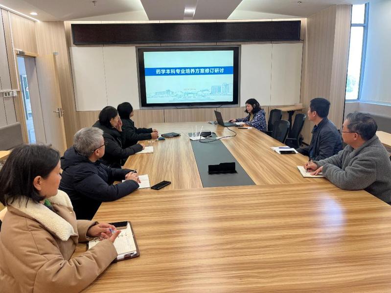 药学专业25级培养方案修订研讨会在实验18楼418会议室召开。院长赵玉政,副院长马磊、张敏和药学专业核心课程主讲教师参加了会议。会议由药学专业责任教授黄瑾主持。