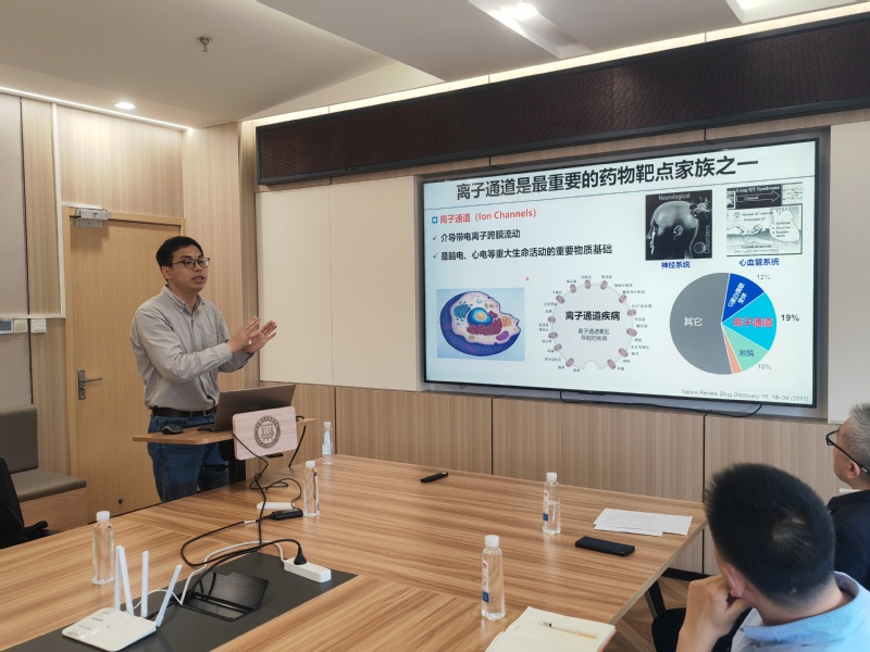 郑月明长期专注于癫痫、疼痛、抑郁等神经精神系统重大慢性疾病的发病机制及药物研发工作。在报告中,他系统地介绍了如何运用电生理学、分子生物学以及化学生物学等前沿技术手段,深入探究相关离子通道的致病机理、靶标确证及调控机制。同时,他还分享了其团队在开发靶向离子通道的新型调节剂方面的最新研究成果。郑月明副研究员认为离子通道作为治疗神经精神疾病的重要靶点,具有广阔的临床应用前景,相关研究将为创新药物研发提供坚实的科学依据。
