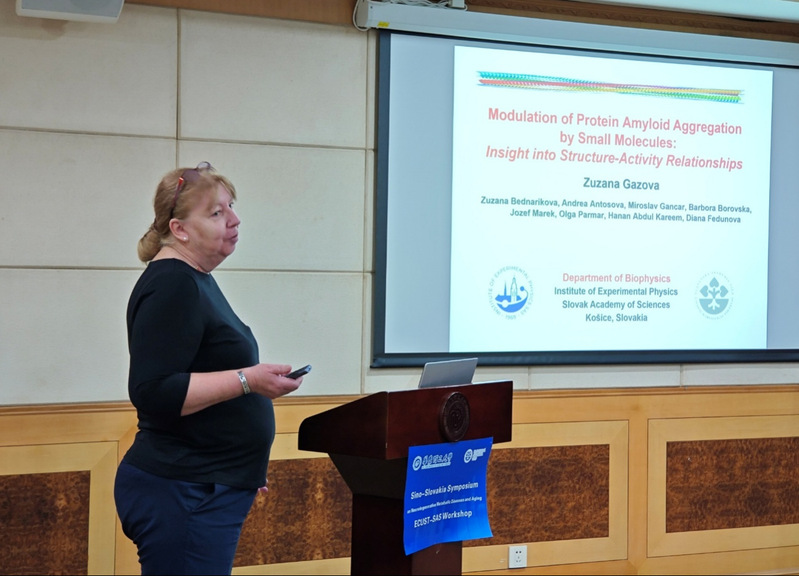 实验物理研究所所长Zuzana Gaová博士首先回顾了双方在生物医学领域长期以来的紧密合作与交流互访历程,并期待双方通过深化合作,开启相关领域发展新篇章。然后,Zuzana Gaová博士基于“神经退行性疾病多靶点治疗的中药小分子发现和机制研究”的双边合作项目框架下的“小分子调节淀粉样蛋白聚集研究”作学术报告,系统阐述了小分子在抑制淀粉样蛋白纤维化中的机制与应用前景。
