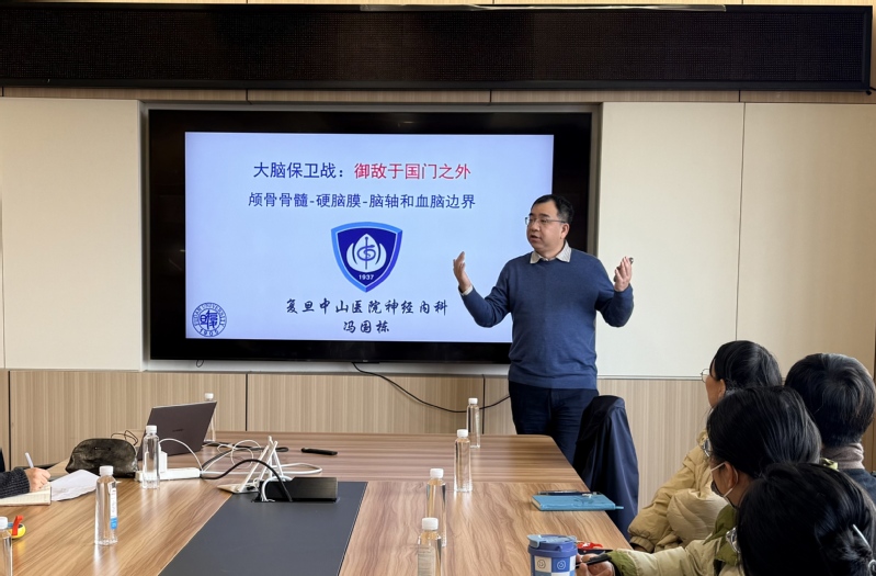 冯国栋医师长期深耕于中枢神经系统感染免疫性疾病与神经系统变性病的临床诊疗及科研工作,在相关领域积累了丰富的实践与研究经验。讲座中,冯国栋医师系统阐释了“颅骨骨髓-硬脑膜-脑轴”在构建免疫与神经双向沟通机制中的关键作用,深入解析如何通过调控该通路优化神经-免疫协同功能,从而为神经系统疾病的预防与治疗提供创新思路。