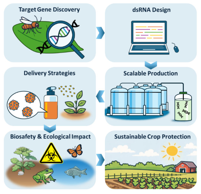 该综述全面总结了RNA生物农药的发展现状与未来趋势,为构建高效、精准、环境友好的新型农药体系提供了系统性的理论指导,也为推动农业绿色发展和可持续作物保护提供了新的技术思路。